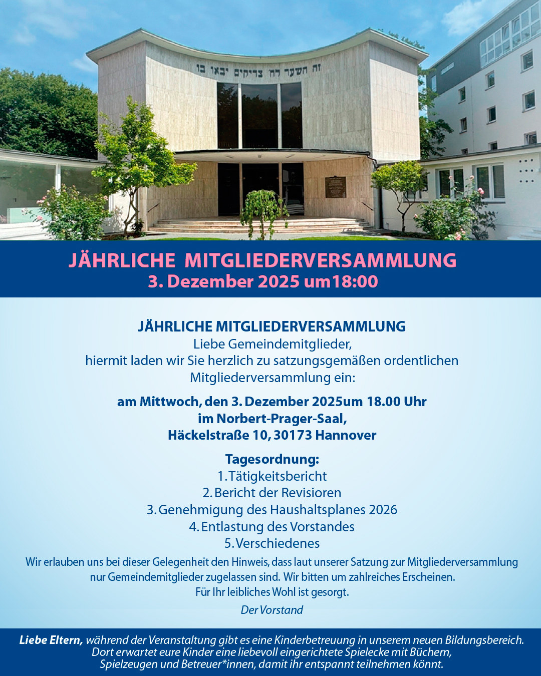 Wir hoffen sehr, Sie möglichst bald in unserer Synagoge begrüßen zu können.