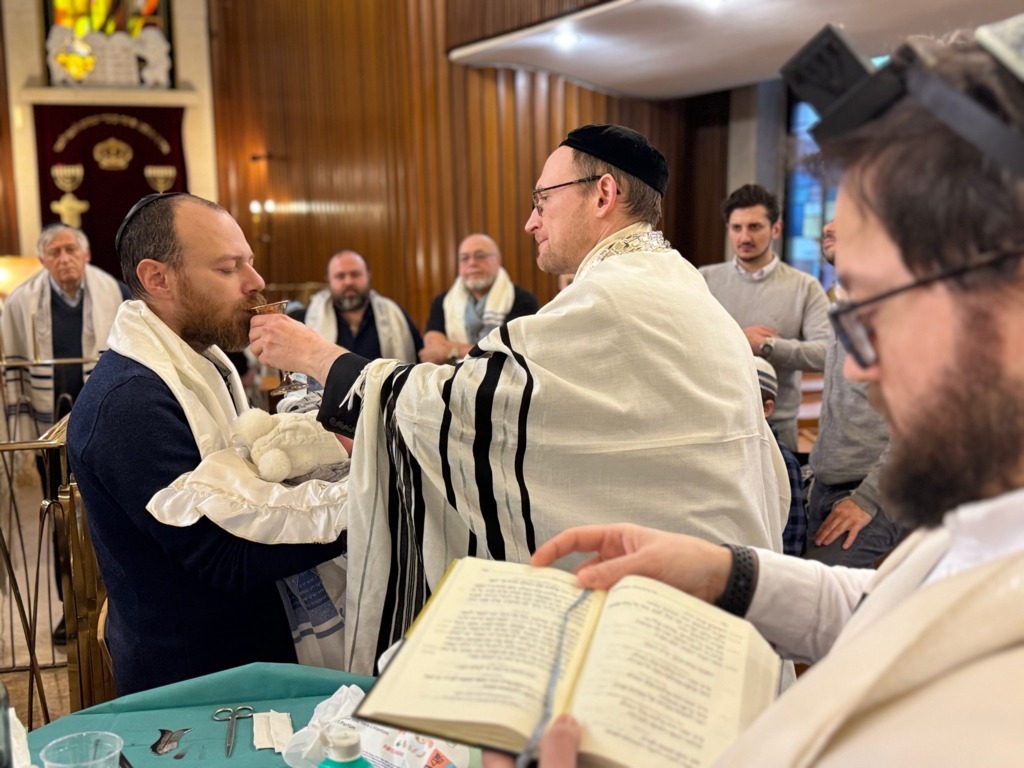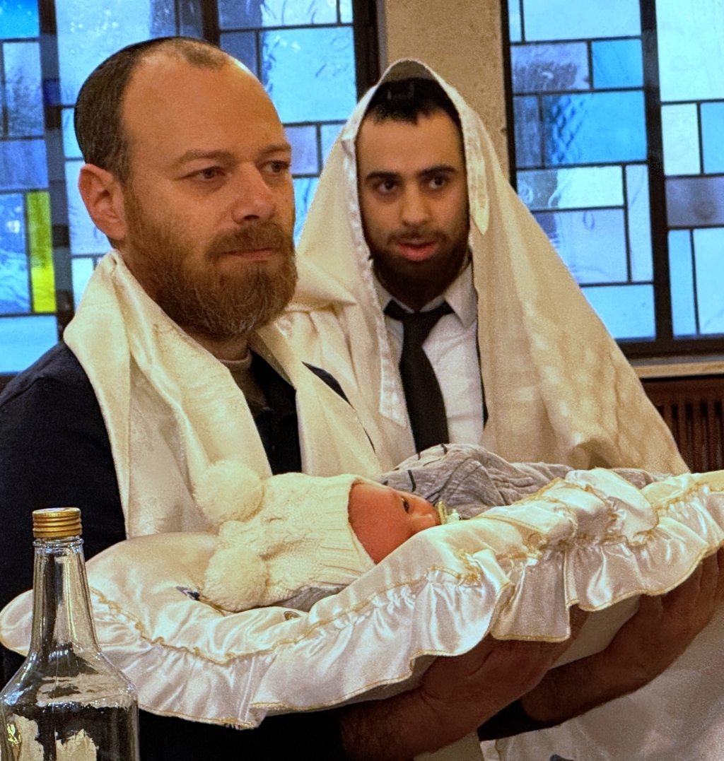 Auch wer nicht am achten Lebenstag beschnitten wurde, wie heute der liebe kleine Leon Ari, kann sich in jedem Alter diesem Bund anschließen. Die Tür steht immer offen, und das jüdische Herz kennt den Weg nach Hause. Unser Rabbiner, Rav Shimon Kutnovsky-Liak, hilft dabei mit Freude, begleitet und organisiert diesen Weg für alle, die ihn gehen möchten.