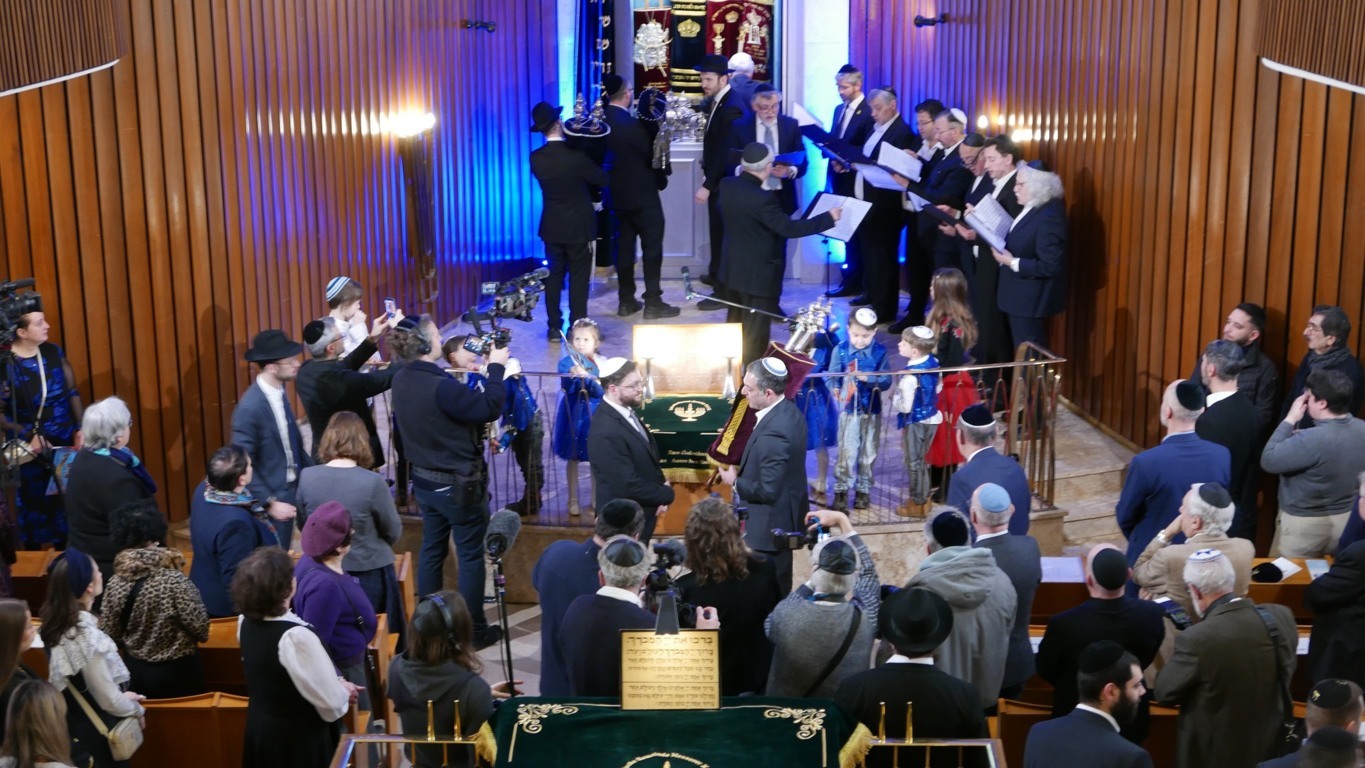 In der bis auf den letzten Platz gefüllten Synagoge wurde dieser besondere Moment von Gebeten, Segensworten und dem Gesang des Litvan-Chors begleitet. Es wurden Wünsche für das Wohlergehen des jüdischen Volkes und des Staates Israel ausgesprochen.