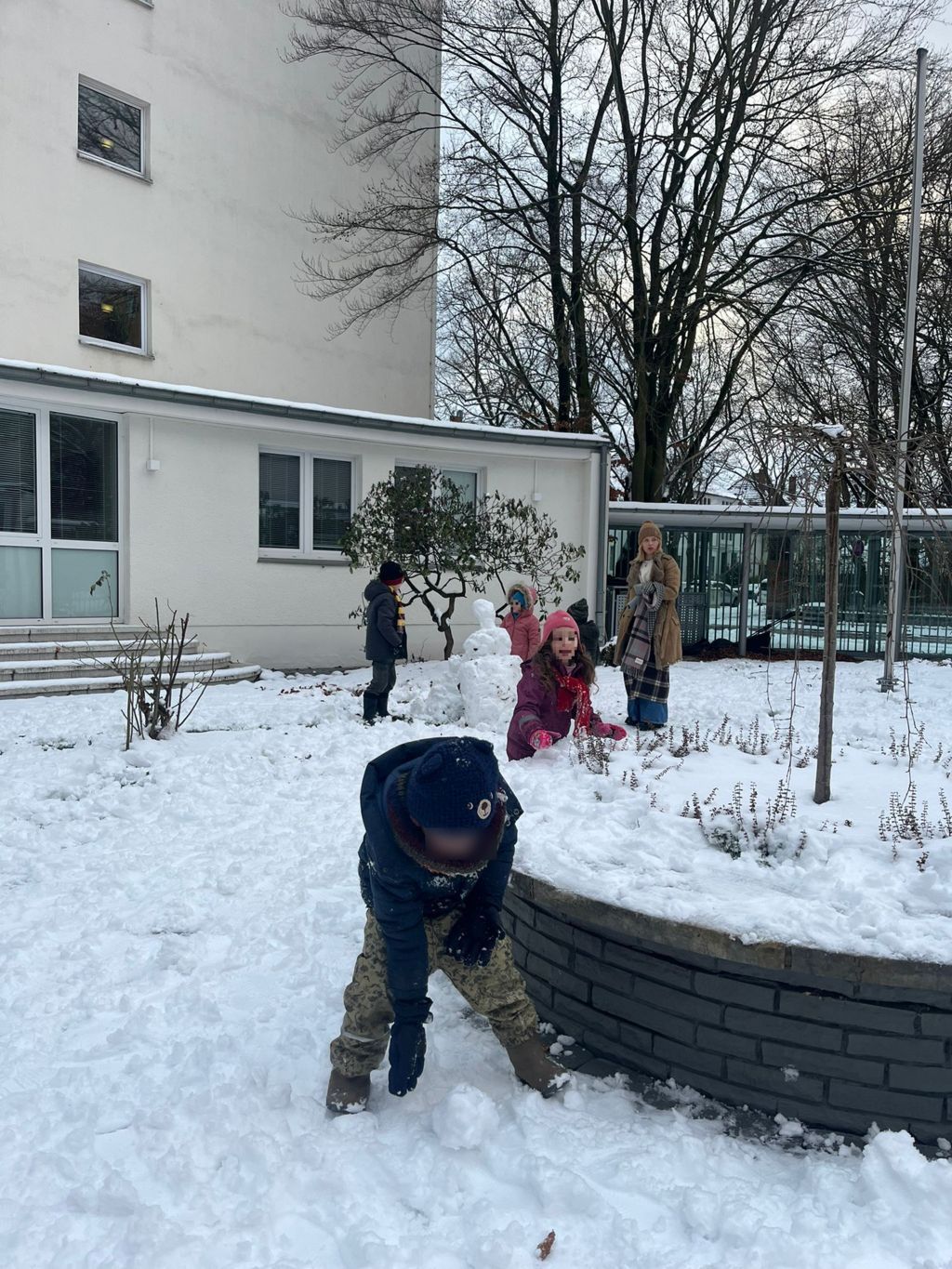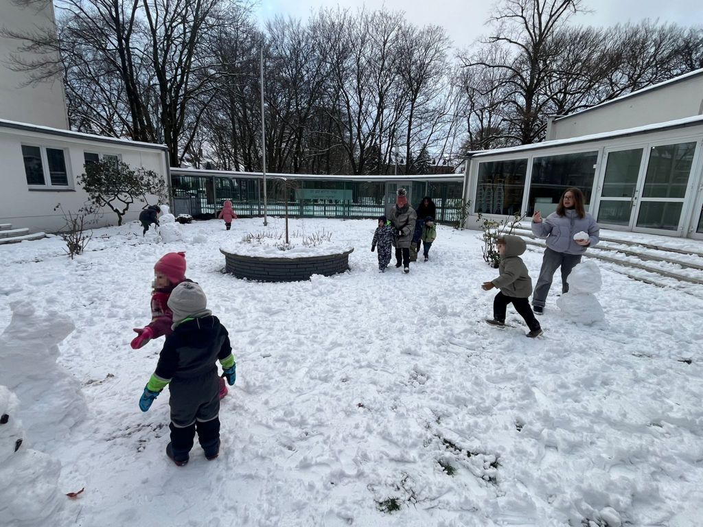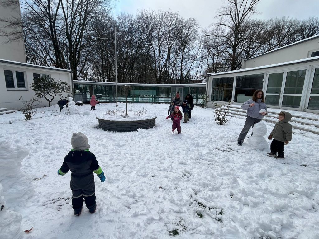 Natürlich durfte auch der Spaß nicht fehlen: Den ersten Schnee des Jahres haben wir gemeinsam in unserem Gemeindegarten genossen