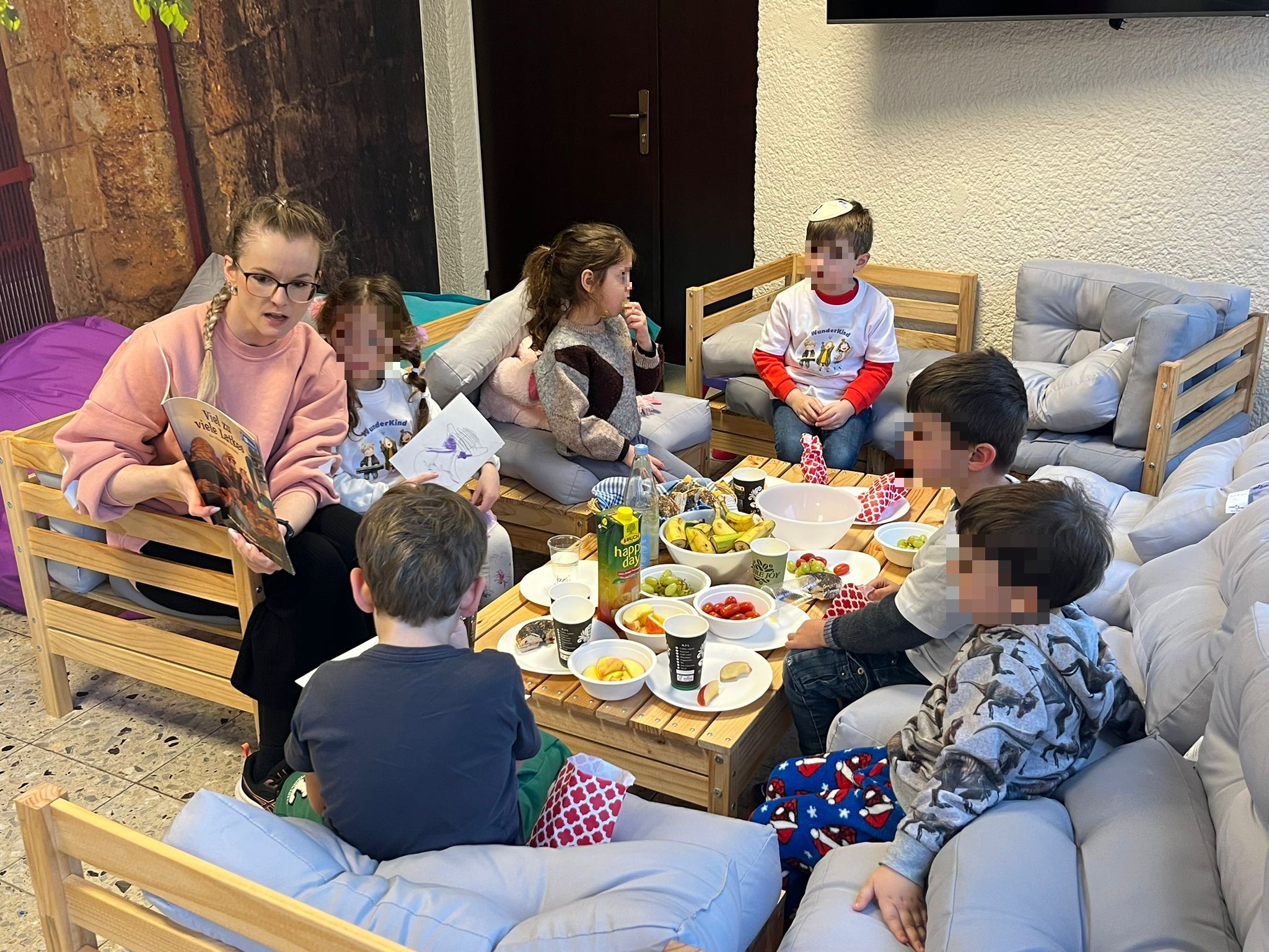 Die Kinder lernten über die Zwillinge Esaw und Jakow und sprachen über „gut und böse“ sowie darüber, was echter Familienzusammenhalt bedeutet.