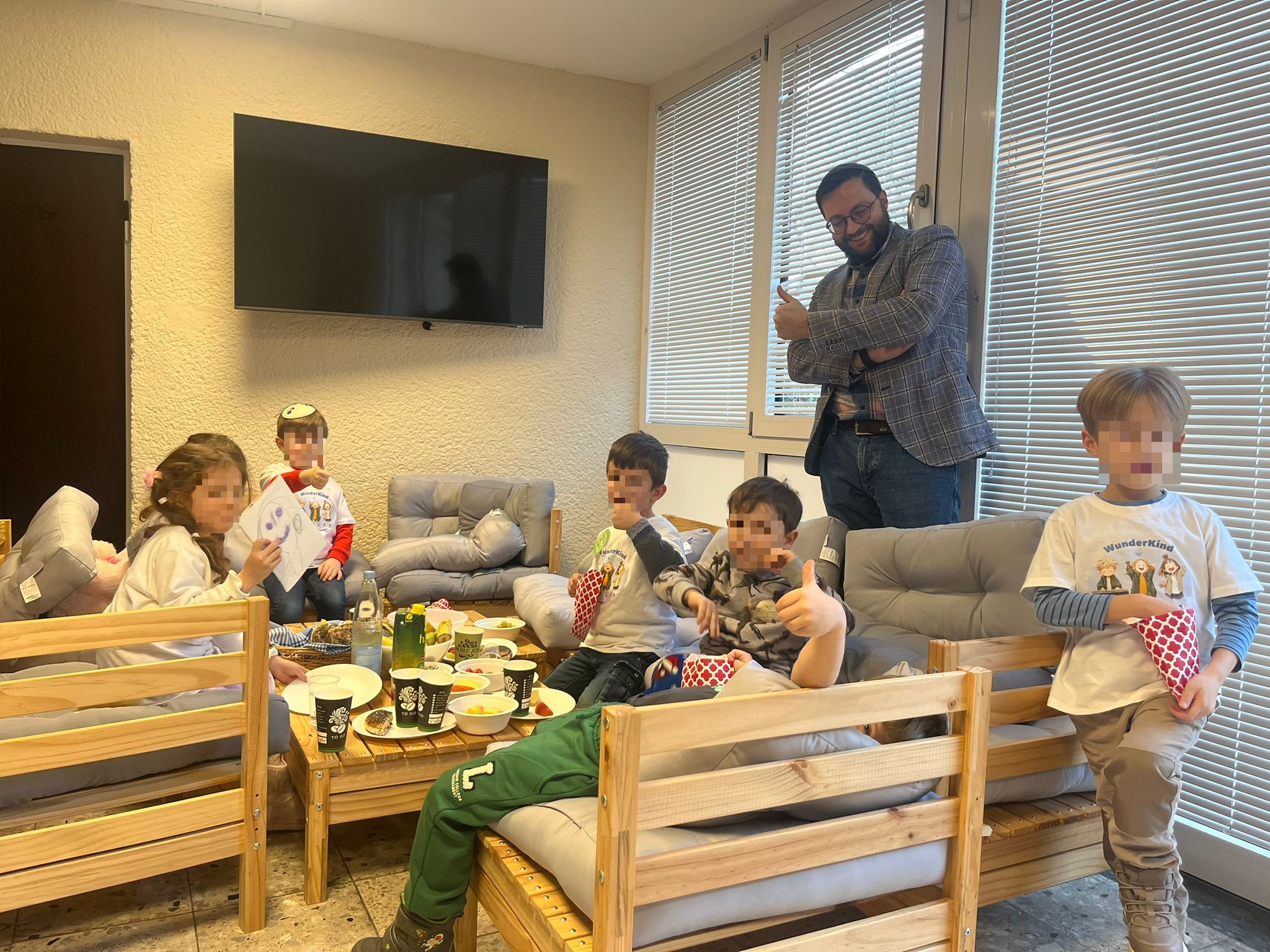 Wie jeden Sonntag nahm auch heute unser Rabbiner teil und erzählte den Kindern die Parschat haShavua – kindgerecht, spannend und voller wertvoller Inhalte.